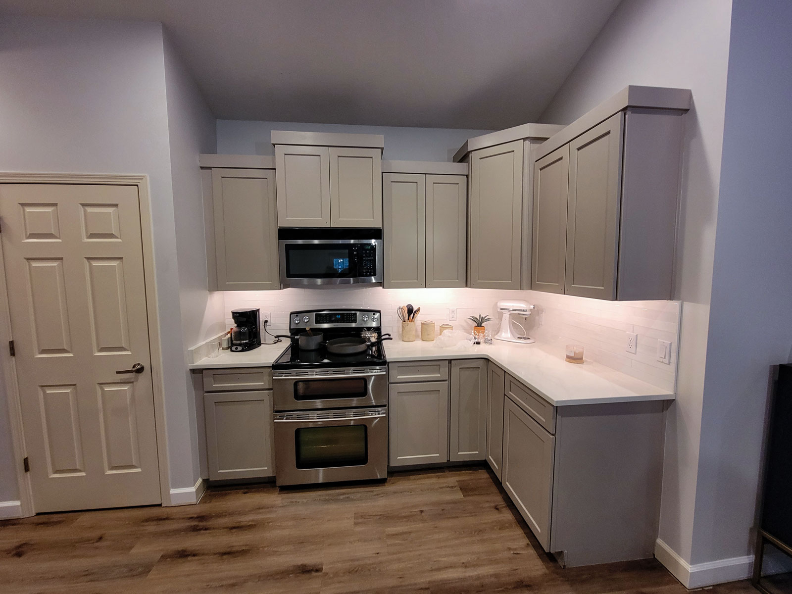 Choosing the right cabinet color can make a big difference in the feel of your kitchen. Check out some examples of colors our own customers have chosen below. Keep in mind while viewing these images, that the color may not look exactly the same in your kitchen due to lighting, and how your monitor presents the color in the image. When in doubt, always try to get a paint swatch or sample that you can see in your own home.