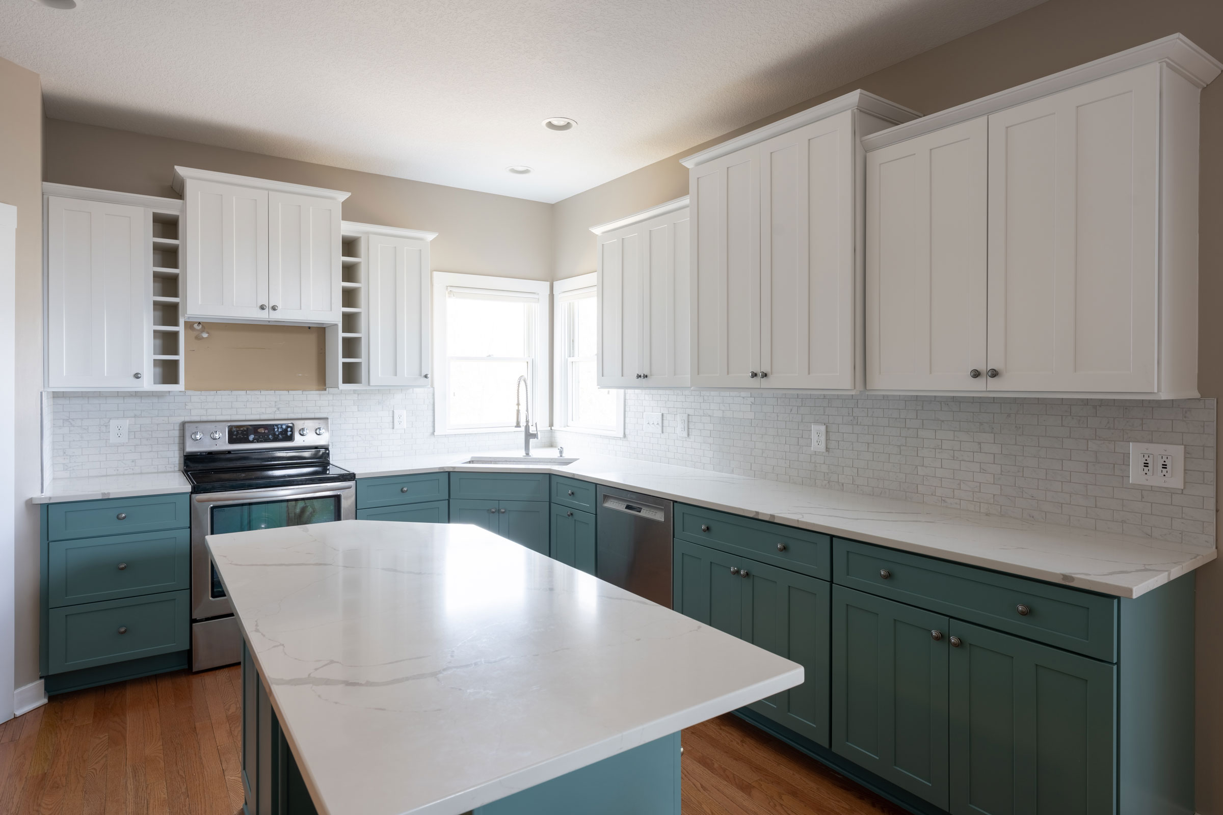 Blue cabinets have been trending upwards the last couple of years and it’s not hard to understand why. Blues can be soothing or can add a homey touch.